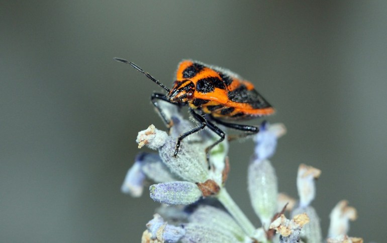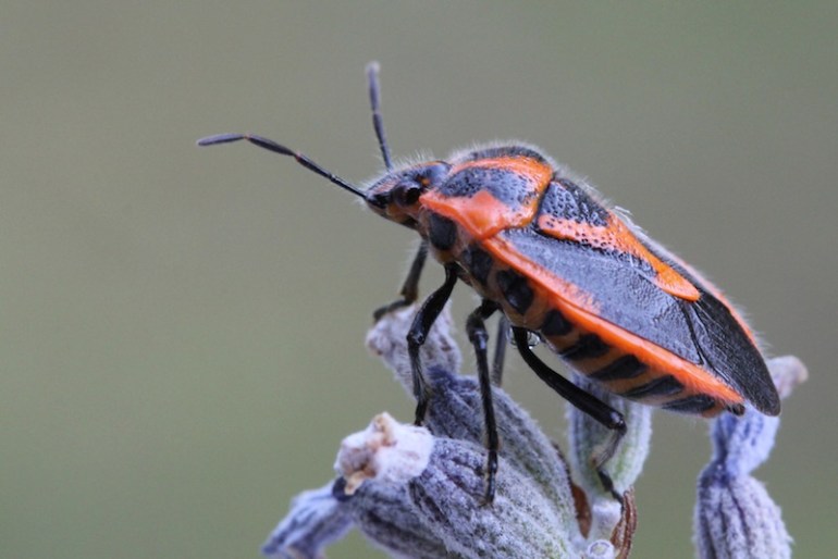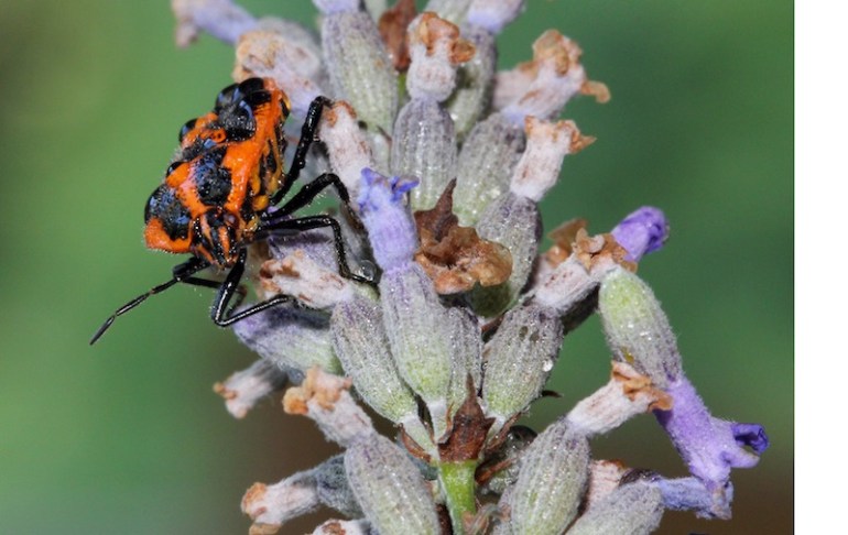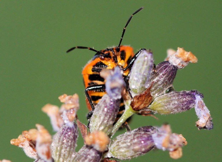 I found one of these this morning, enjoying the Lavender…….it’s proper name is Murgantia histrionica a common garden insect that can devastate cauliflower and broccoli plants if in large numbers. This is the first one I have seen this year – I think it looks very smart in their orange and black livery.