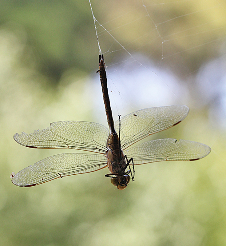 This poor fellow became trapped in another web, and attracted my attention by frantically trying to fly away, but he was firmly trapped.  Once he had posed for his photo, he was released.
