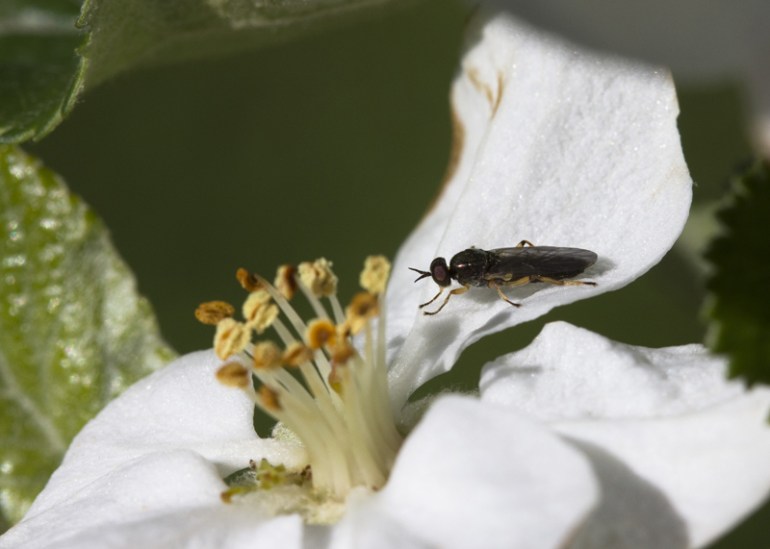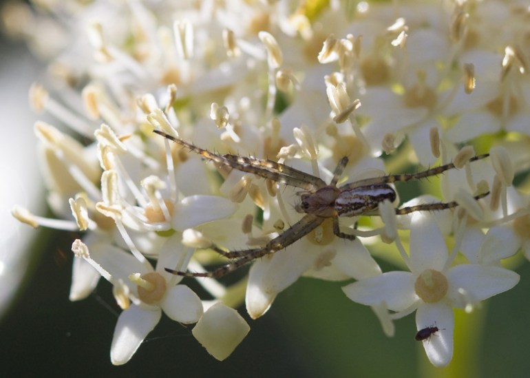 Out early yesterday to shoot some flowers and blossoms on the fruit trees, I kept finding insects and young spiders hiding on the foliage. Here are some images I took.