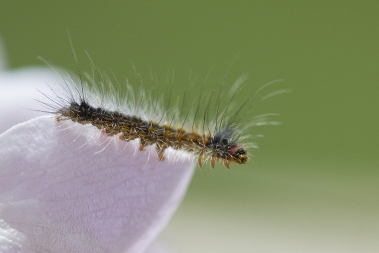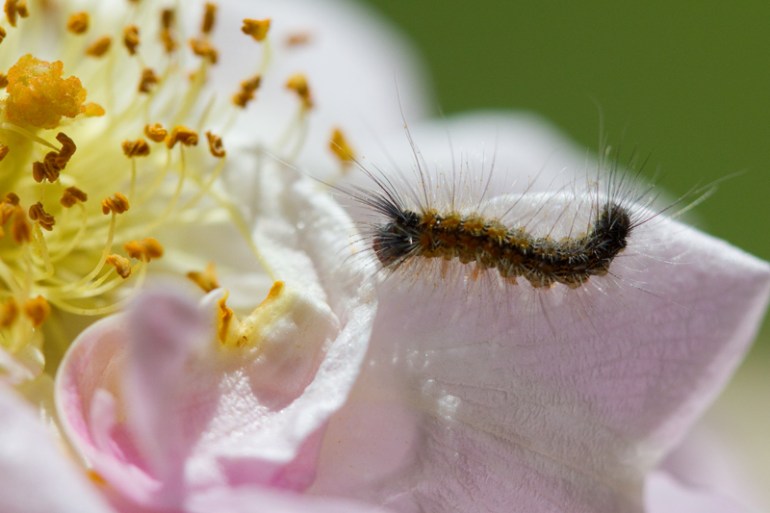 I found this little beast with the punk hairdo when out searching for subjects to shoot with the Macro lens this morning………..I think it is some kind of moth, very small, only about 10 mm long, and had been nibbling rose petals. What a life!