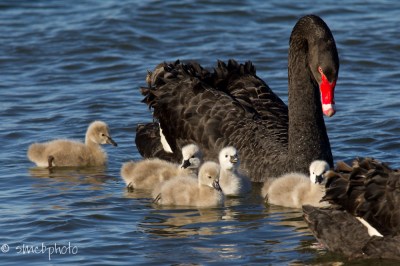 Black Swans (Cygnus atractus) and cygnets